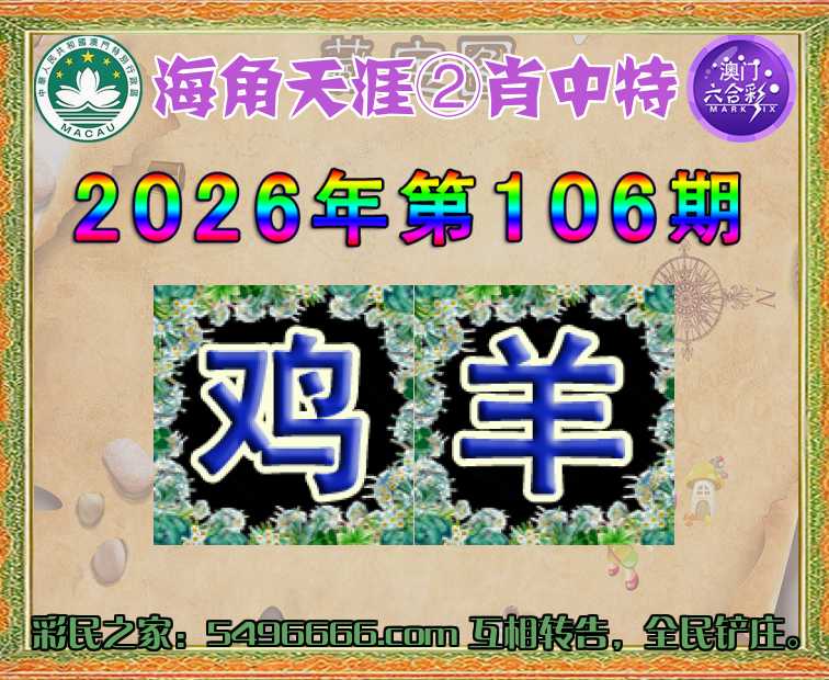 106期:【海角天涯】 😳②肖中特😳【鸡.羊】开:00准