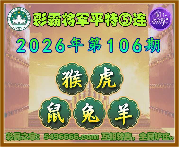 106期:『彩霸将军』 🍁平特⑤连🍁【猴虎鼠兔羊】开:00准