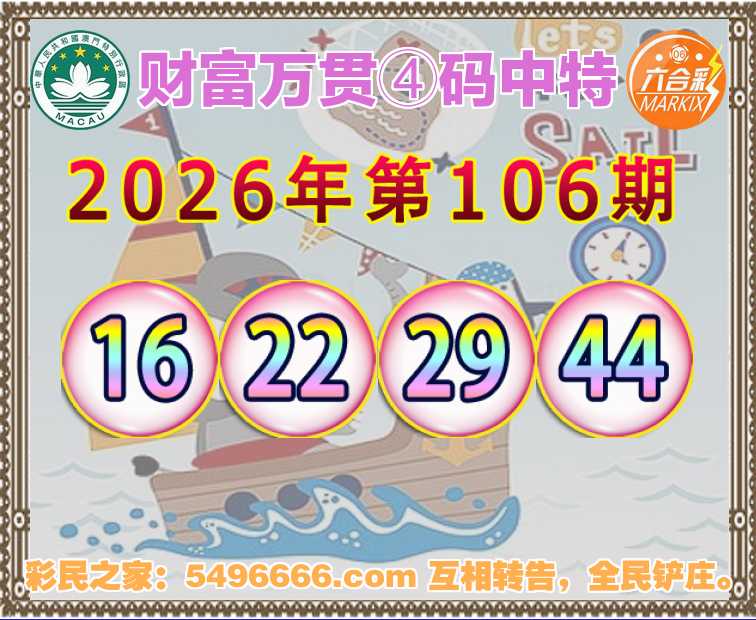 106期:《财富万贯》 🪢④码中特🪢【16.22.29.44】开:00准