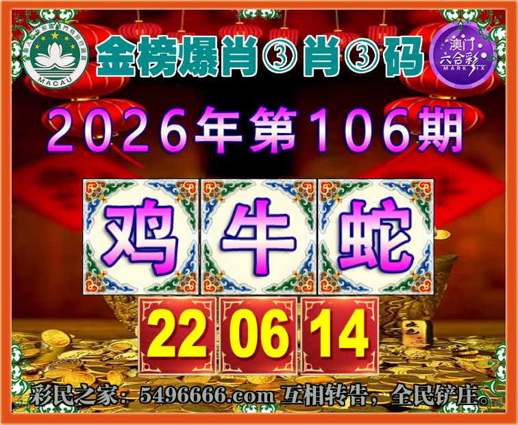 106期:【金榜爆肖】 🎯③肖③码🎯【鸡牛蛇】【22.06.14】开:00准