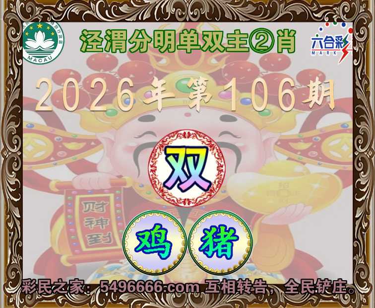 106期:【泾渭分明】〓单双主②肖〓精准爆料★