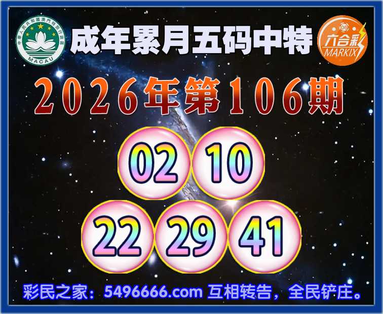 106期:【成年累月】五码中特✨【02.10.22.29.41】开:00准