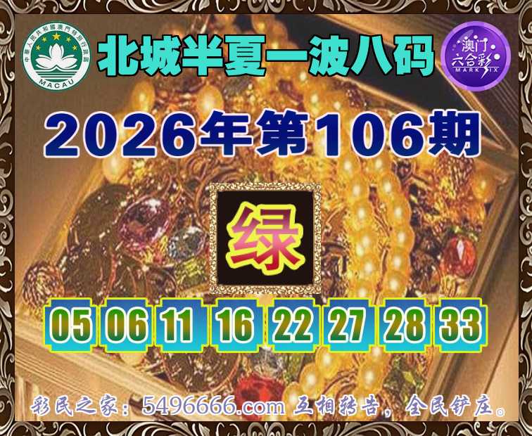 106期: 北城半夏 📸一波八码📸【绿波】开:00准