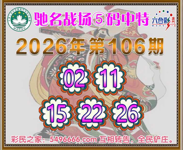106期:【驰名战场】 🪢⑤码中特🪢【02.11.15.22.26】开:00准