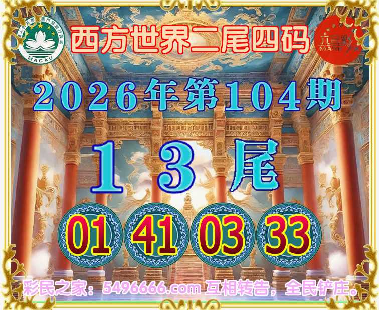 104期:《西方世界》 🍄二尾四码🍄【13尾主:01.41.03.33】开:01