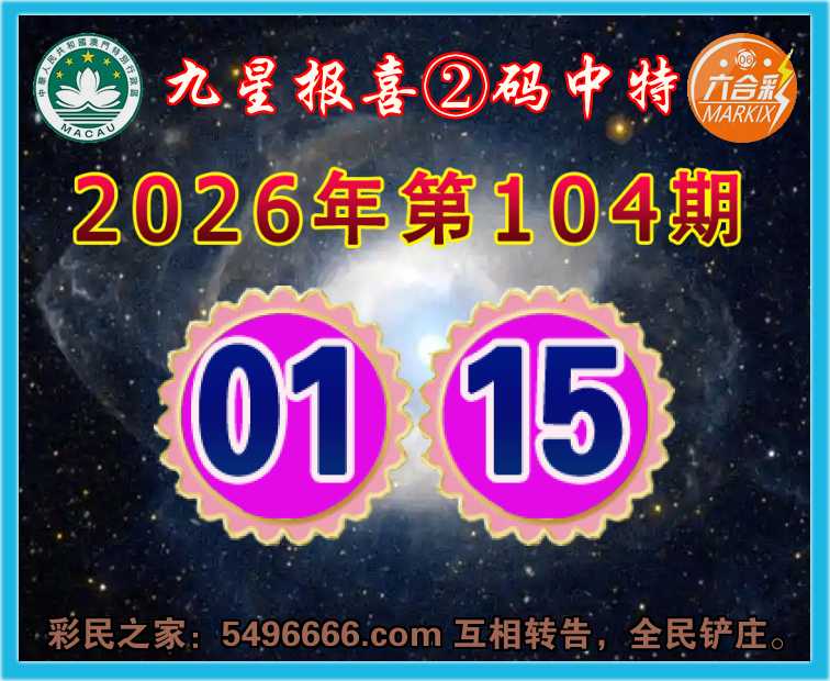 104期:《九星报喜》 ☘️②码中特☘️【01.15】开:01