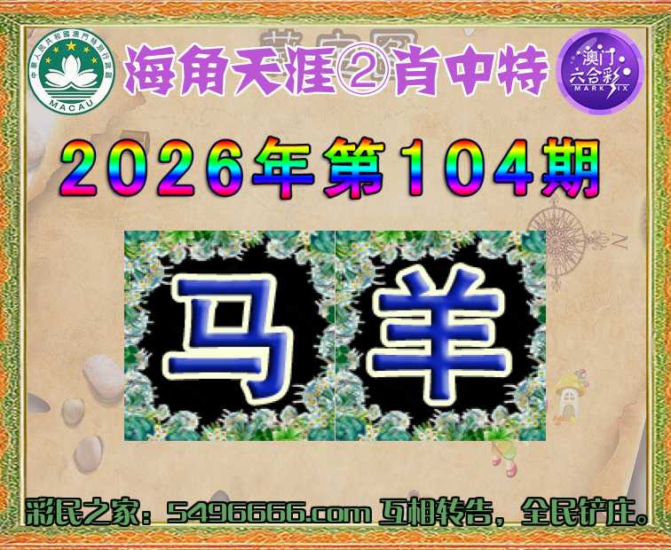 104期:【海角天涯】 😳②肖中特😳【.羊】开:马01