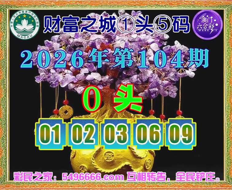 104期: 财富之城 🌲①头⑤码🌲【0头主:01.02.03.06.09】开:01