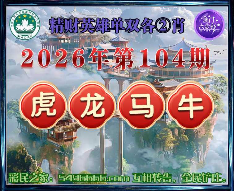 104期:『精财英雄』 🌳单双各②肖🌳【虎.龙..牛】开:马01