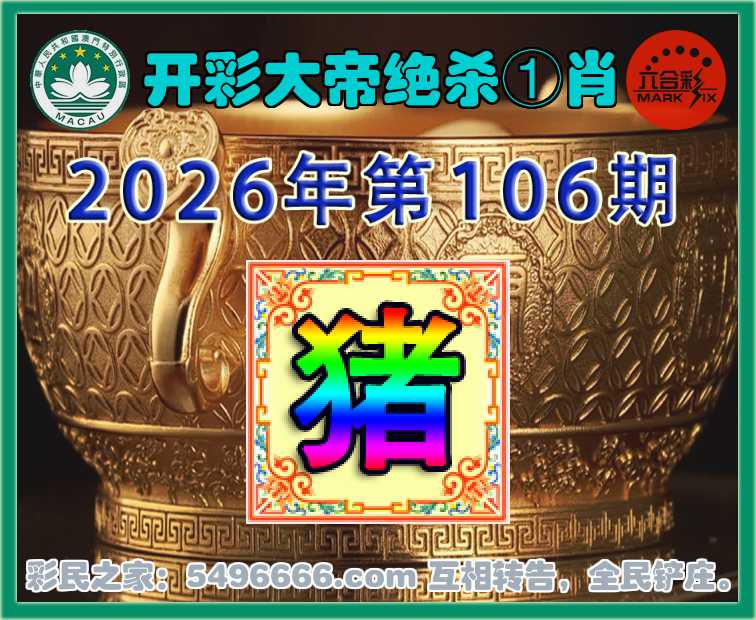 106期:【开彩大帝】 🌷绝杀①肖🌷【猪】开:00准