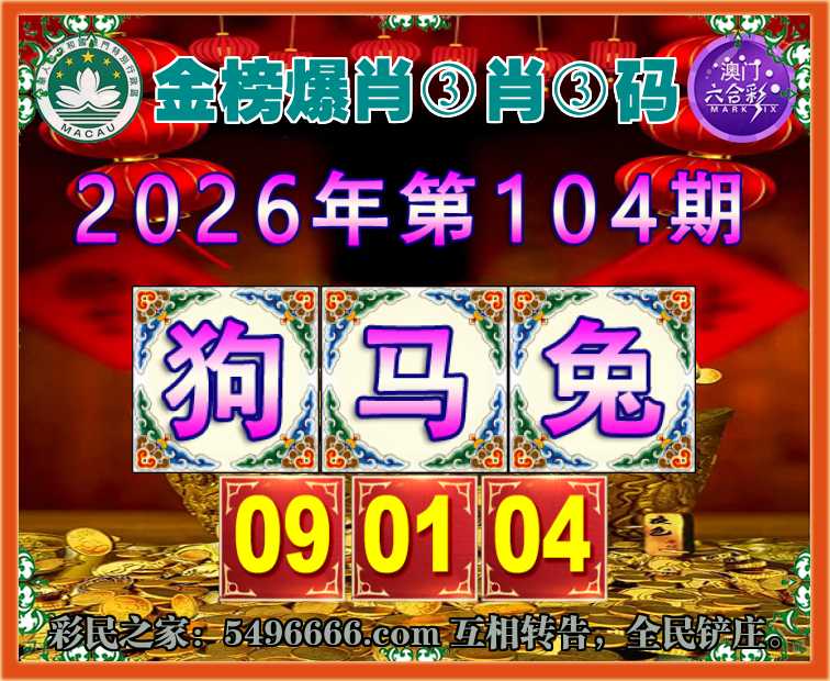 104期:【金榜爆肖】 🎯③肖③码🎯【狗兔】【09.01.04】开:马01