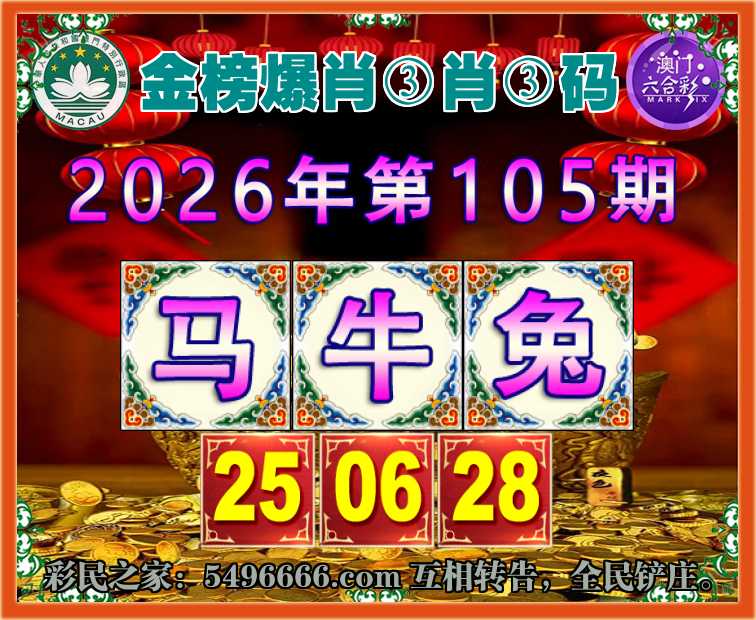 105期:【金榜爆肖】 🎯③肖③码🎯【马牛】【25.06.28】开:兔28