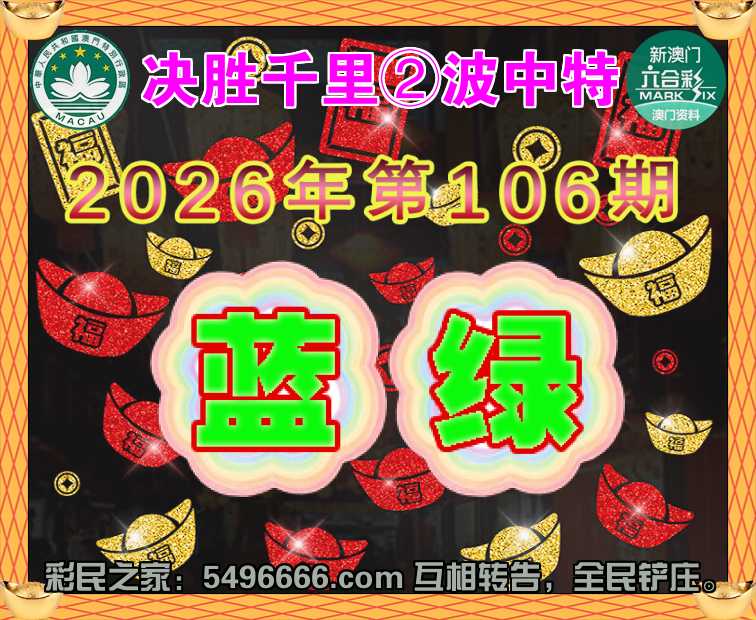 106期:【决胜千里】 🧩②波中特🧩【蓝.绿】开:00准