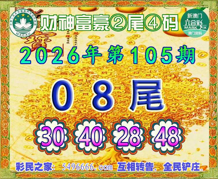 105期:【财神富豪】 🏇②尾④码🏇【08尾主:30.40.28.48】开:28