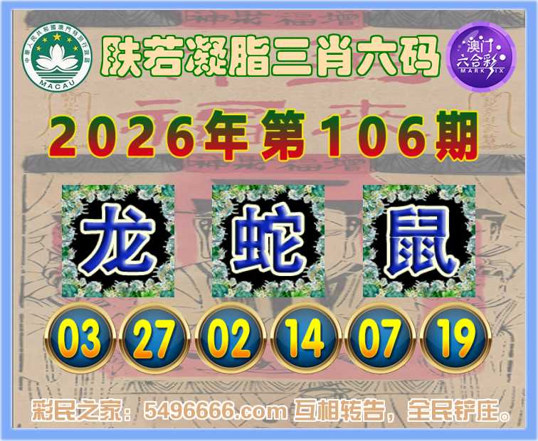 106期: 肤若凝脂 😍三肖六码😍【龙蛇鼠】开:00准