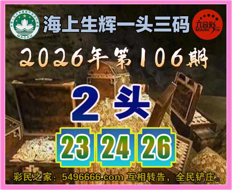 106期:『海上生辉』 🍙一头三码🍙【2头主:23.24.26】开:00准