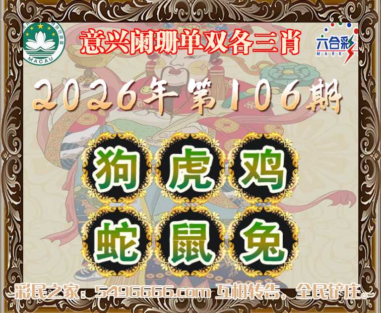 106期: 🗡『意兴阑珊』 🗡单双各三肖🗡【狗.虎.鸡.蛇.鼠.兔】开:00准