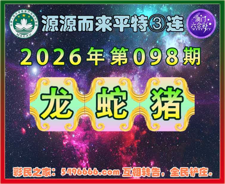 098期:『源源而来』 🏆平特③连🏆【龙蛇猪】开:龙03,蛇14,猪08准