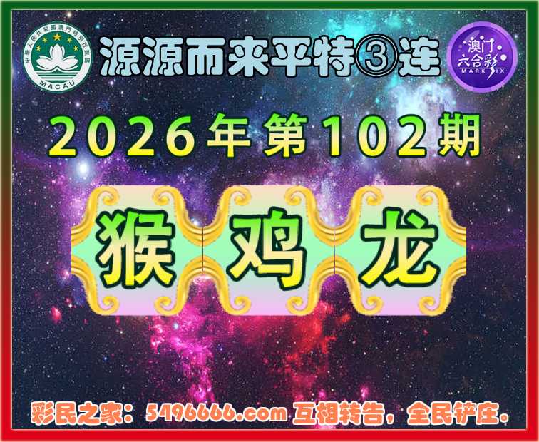 102期:『源源而来』 🏆平特③连🏆【猴鸡龙】开:猴47,鸡46,龙03准