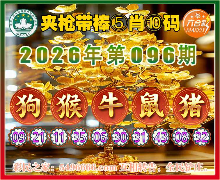 096期:『夹枪带棒』 🪢⑤肖⑩码🪢【狗猴牛猪】开:鼠43
