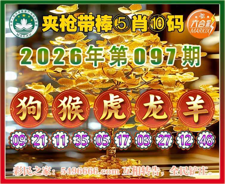 097期:『夹枪带棒』 🪢⑤肖⑩码🪢【狗虎龙羊】开:猴11