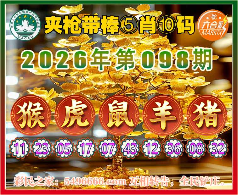 098期:『夹枪带棒』 🪢⑤肖⑩码🪢【猴鼠羊猪】开:虎17