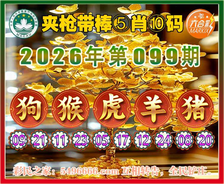 099期:『夹枪带棒』 🪢⑤肖⑩码🪢【狗猴虎猪】开:羊12