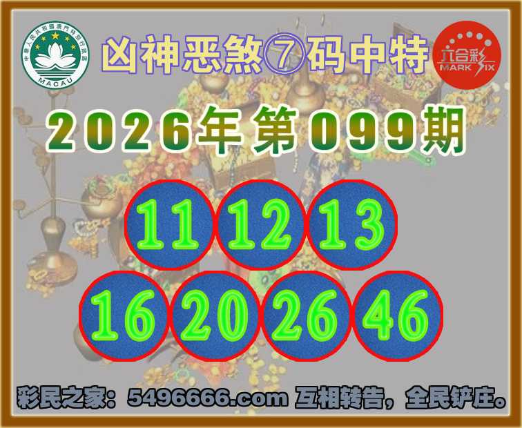 099期: 😍『凶神恶煞』 😍⑦码中特😍【11.12.13.16.20.26.46】开:12