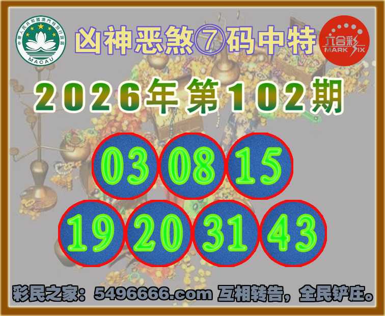102期: 😍『凶神恶煞』 😍⑦码中特😍【03.08.15.19.20.31.43】开:20